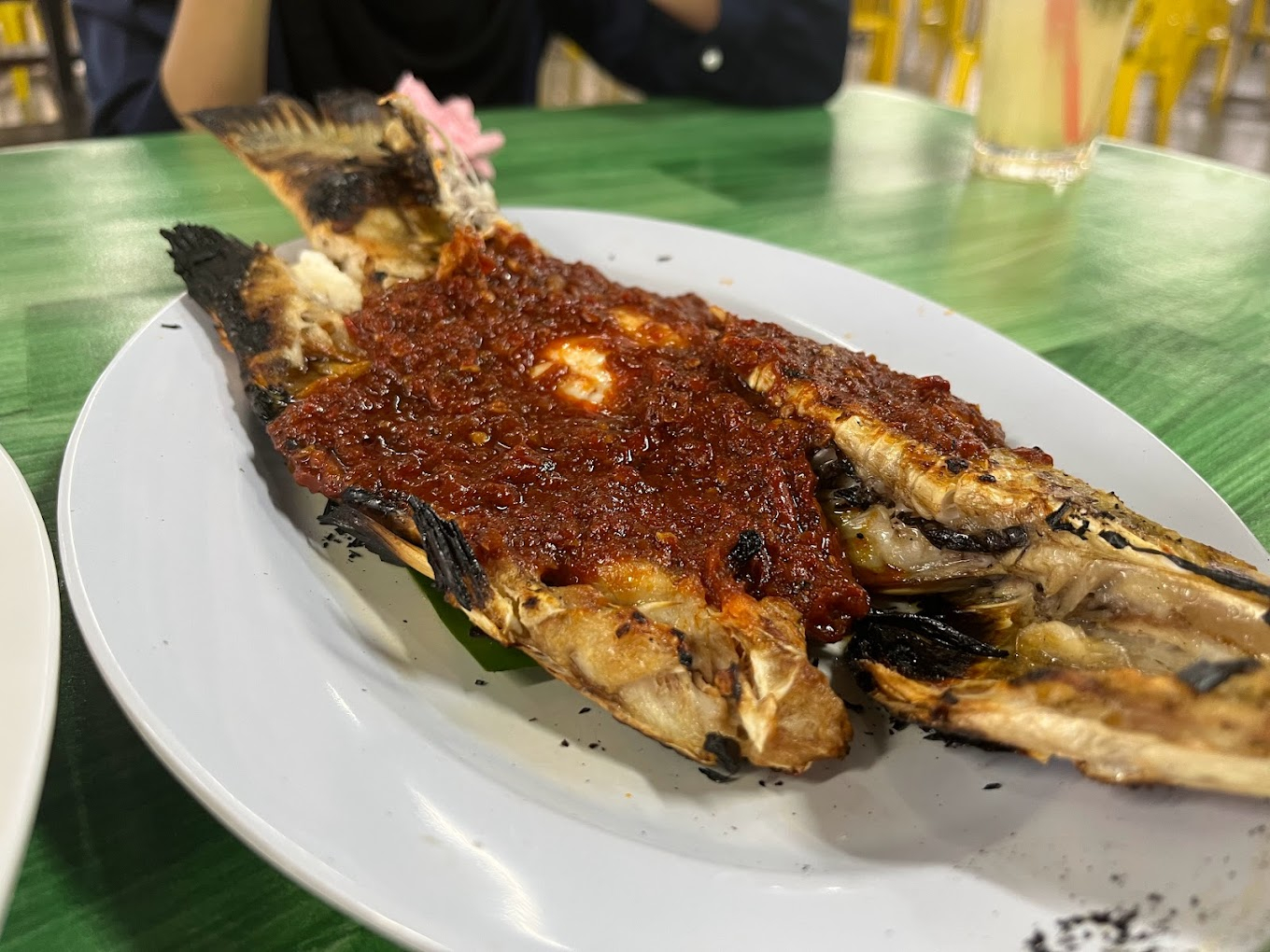 A popular destination for grilled fish is Umbai, Melaka. While there are many options to choose from, the most popular and recommended one is Ikan Bakar Parameswara.  They offer a wide variety of dishes including Thai-style seafood, salads, fried items, and other favorites like Melaka's otak-otak. They also serve packed nasi lemak alongside plain rice. It's a unique but delicious combination.