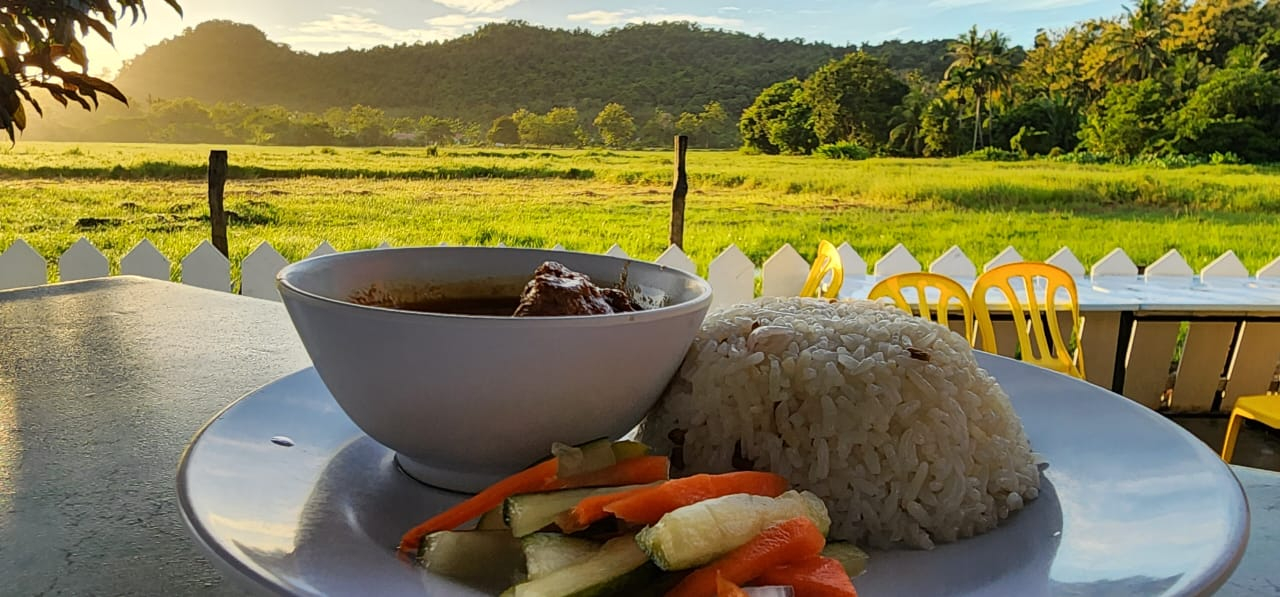 First on our list is Kerisik Restaurant at Laman Padi, located near Pantai Cenang. Enjoy dining in charming wooden huts with scenic views of lush paddy fields, making this restaurant one of the top halal food spots in Langkawi.
