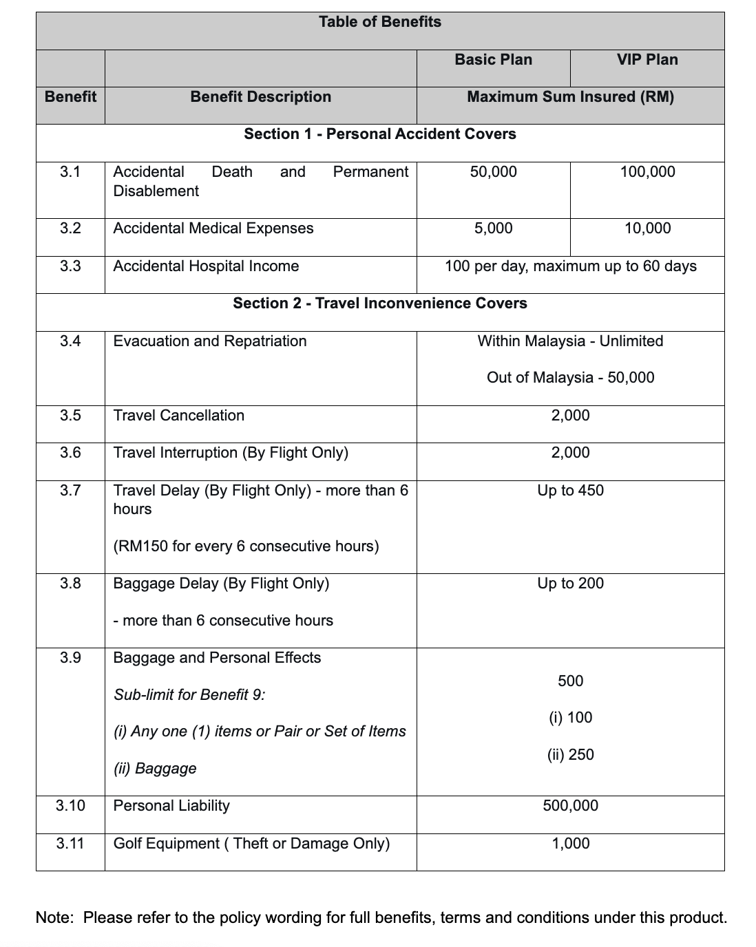 This is a domestic travel product that covers you while you are travelling within Malaysia, and it is available in both Insurance & Takaful.